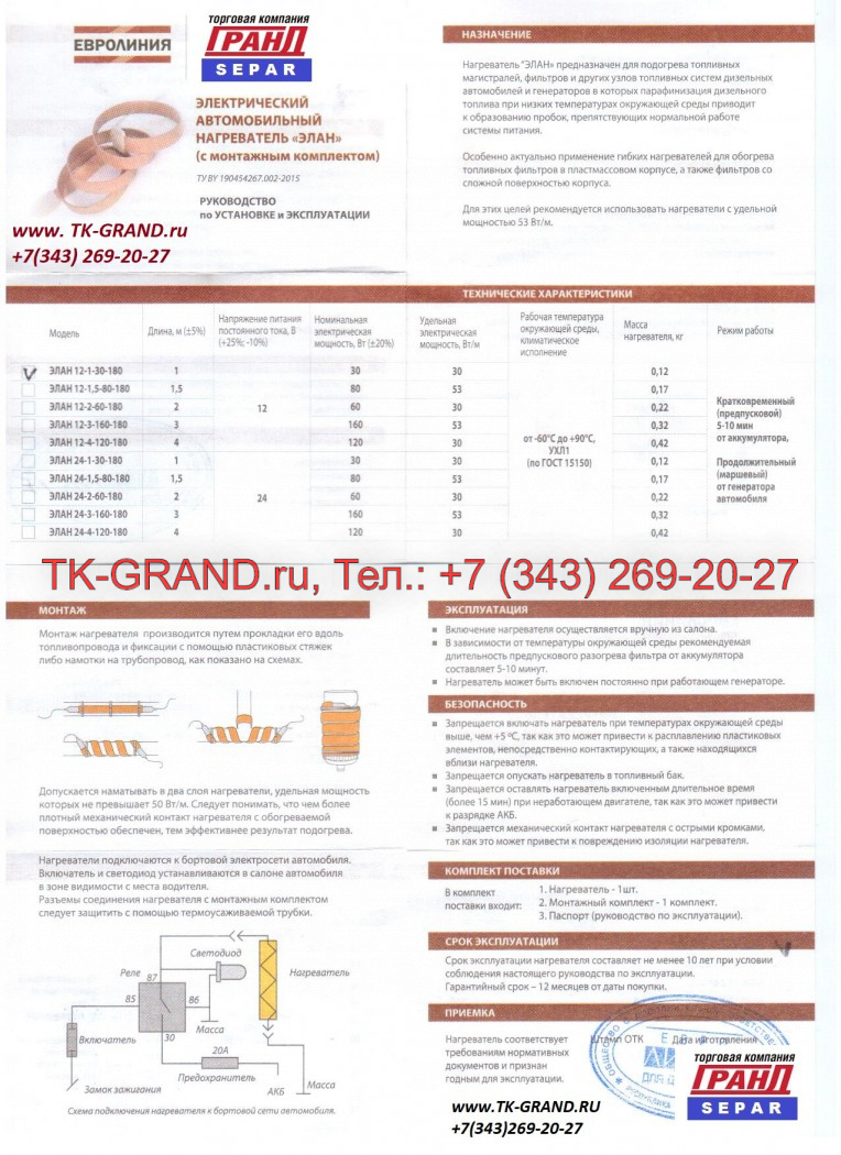 | Ленточный подогреватель 12V, 2 метра | 1 570 руб. | В корзину | |
